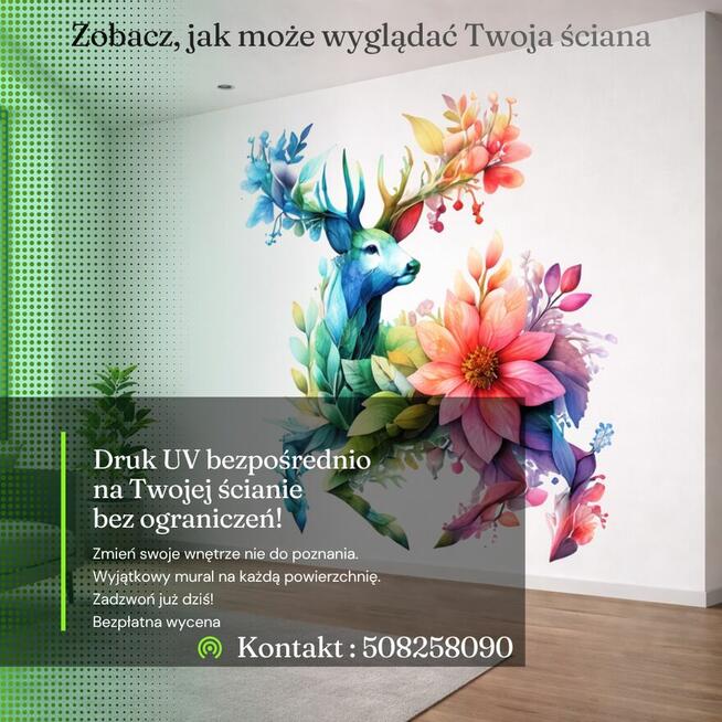 Dlaczego Twoja ściana miałaby być nijaka? Zmienimy ją ? Co robimy? • Drukujemy bezpośrednio na ścianie – bez ...